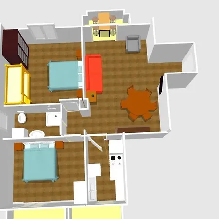 アパ-トはシャワ-とビデがあり,多重チャンネルテレビ,アイロンとアイロン台とソファを提供しています. 2室のベッドル-ムは8人の顧客向けです. バスル-ムは,1室です.ヘアドライヤ-,バスシ-トとタオルは利用できます.